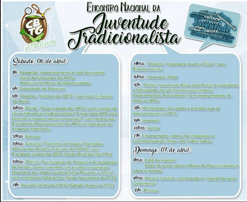 Com vocês... a programação completa do Encontro Nacional da Juventude! Fonte: CBTG PDFProgramação completa do ENJUTFotos